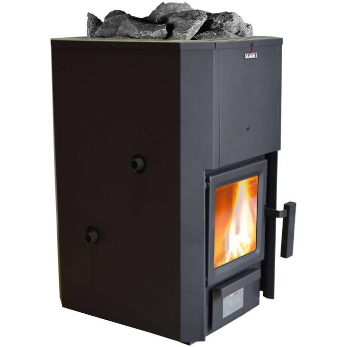Malkinė pirties krosnelė su vidine pakura.Katilo jungtis kairėje pusėje.Pakuros durelės 230x230 mm su stiklu.Kūrenimui naudojamų malkų ilgis iki 40 cm.Skirta 8-18 m³ pirtims.Krosnelės aukštis - 73 cm, plotis - 51 cm, gyl... Skaityti daugiau...