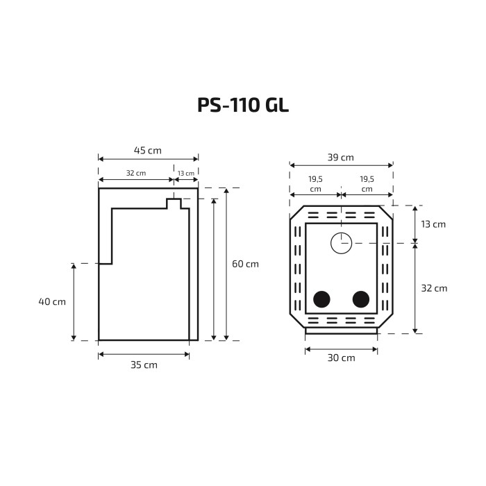 Krosnelės aukštis - 60 cm, plotis -39 cm, gylis - 45 cm.