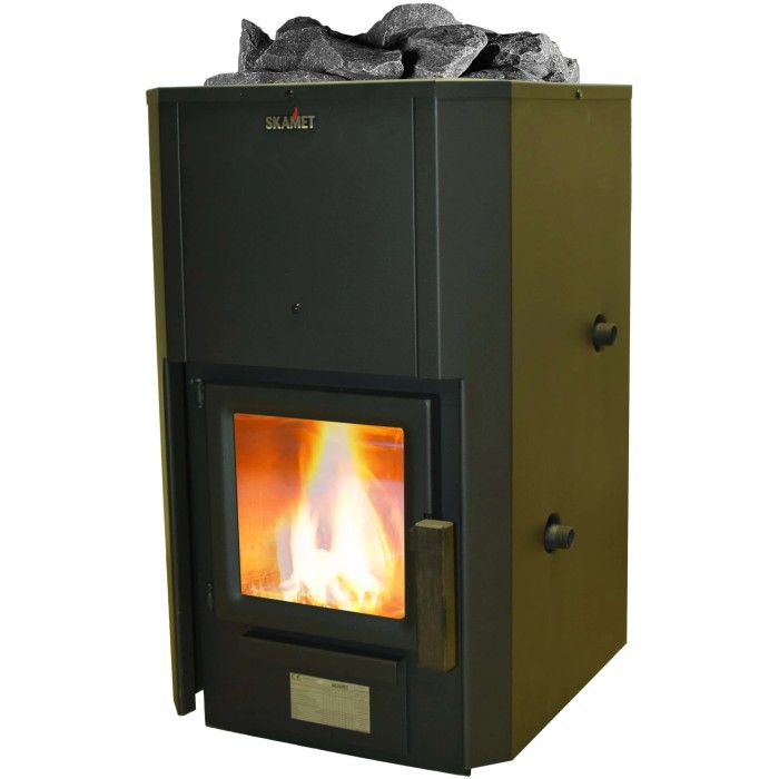 Malkinė pirties krosnelė su vidine pakura.Katilo jungtis dešinėje pusėje.Pakuros durelės 230x230 mm su stiklu.Kūrenimui naudojamų malkų ilgis iki 40 cm.Skirta 8-18 m³ pirtims.Krosnelės aukštis - 73 cm, plotis - 51 cm, gy... Skaityti daugiau...