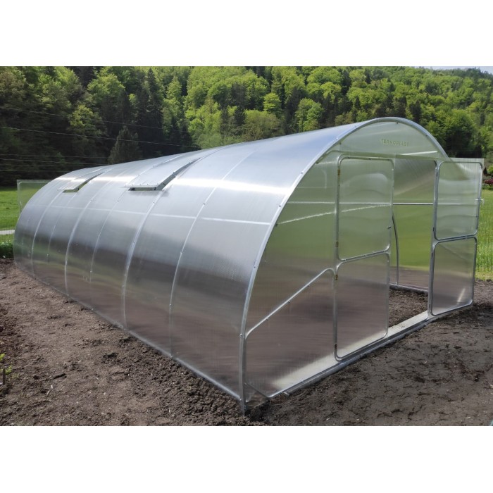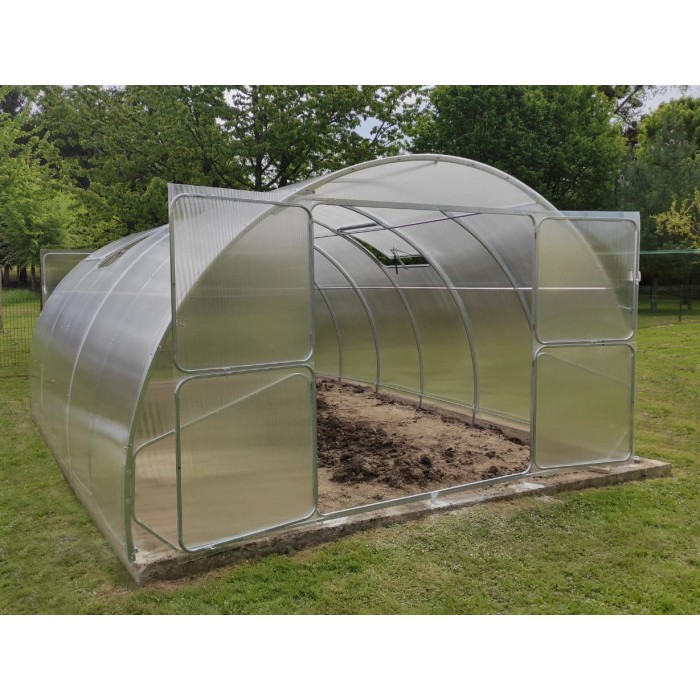 Šiltnamio matmenys: plotis 4 m, ilgis 10 m, aukštis 2.30 m.