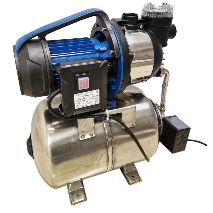Vandens tiekimo siurblys su filtru ir nerūdijančio plieno bakeliu.