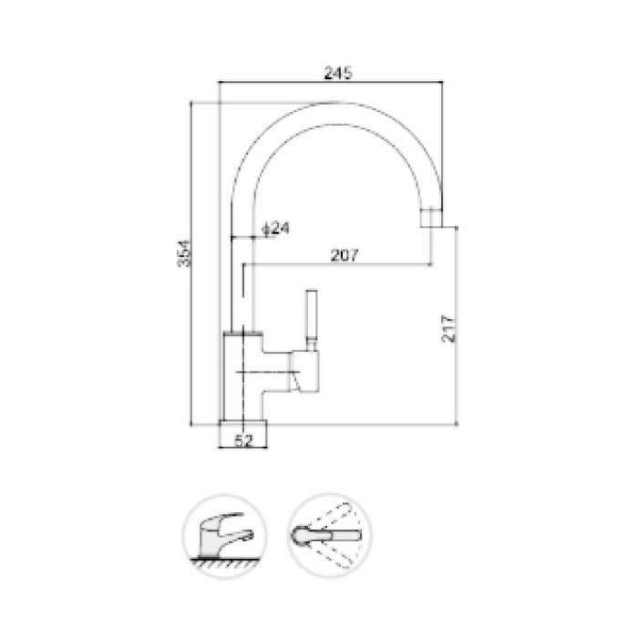 Vienos svirties virtuvės maišytuvas pasukamu snapeliu.