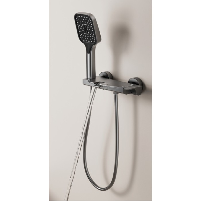 Komplekte su žarna 1.5 m ilgio, dušo galva ir laikikliu.