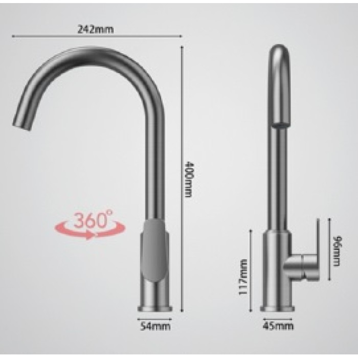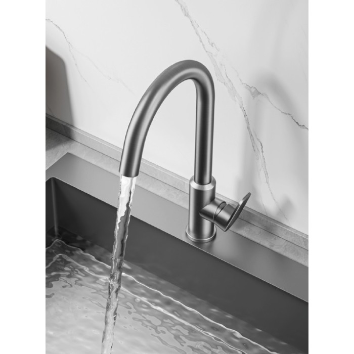 Vienos rankenėlės virtuvinis maišytuvas lenktu snapu, sukiojamu 360 laipsniu kampu.Maišytuvo aukštis - 40 cm.Spalva - pilka.... Skaityti daugiau...