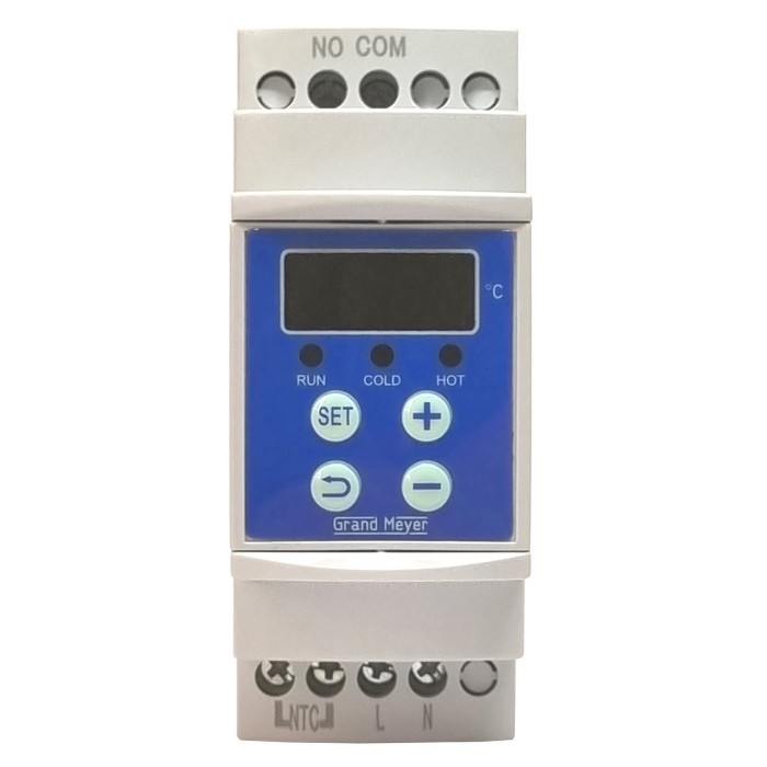 Įrenginys įjungia arba išjungia šildymo ar vėsinimo įrenginį pagal nuotolinio NTC temperatūros jutiklio siunčiamus signalus.