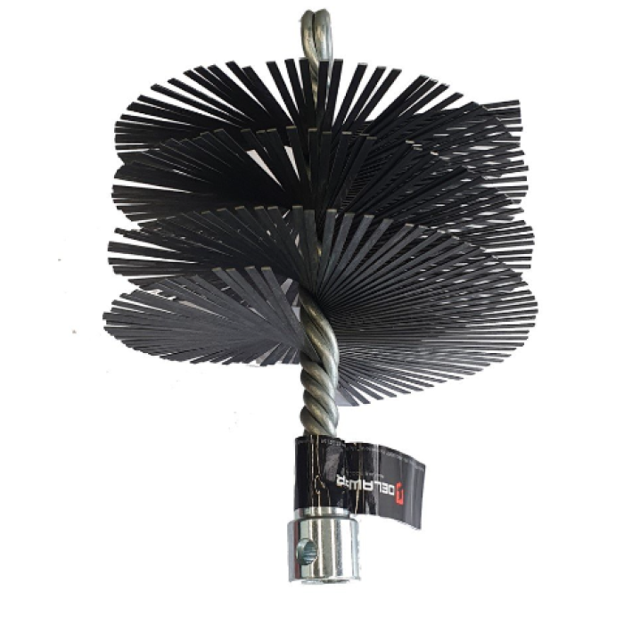 Šepetys kaminui DELAWAR. Plokščios vielos šepečiai. Skirti įvairių išmatavimų dūmtraukiams ir vamzdžiams valyti. Tai aukštos kokybės plokščios vielos šepečiai, turintys tris apvijas.