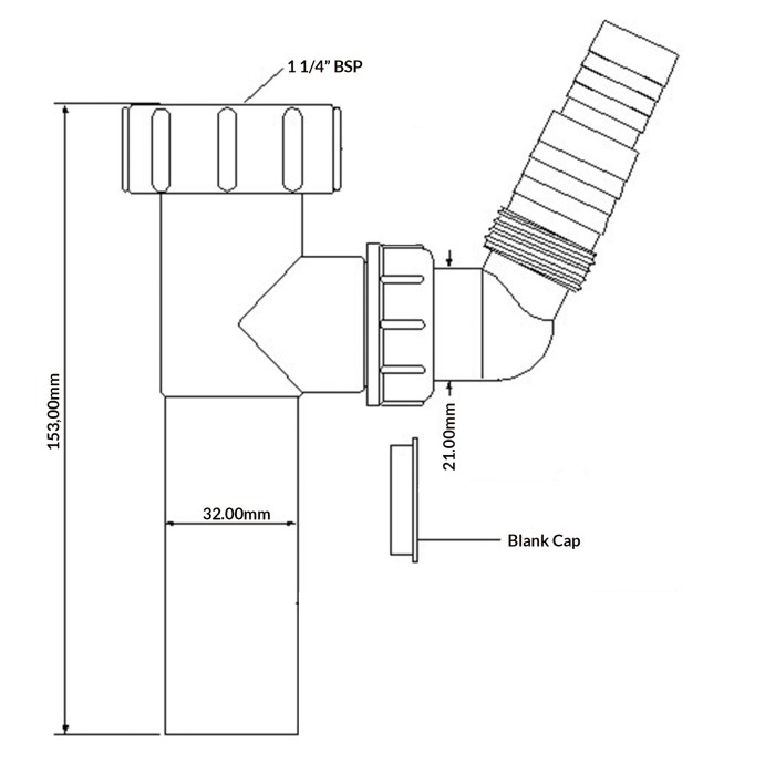 TEE5/4B1 vertikalus praustuvo sifono prailginimas yra funkcionalus priedas, skirtas kanalizacijos įrengimui vonios kambariuose arba virtuvėse. Pagamintas 1,1/4 colio x 32 mm dydžio, jis turi prijungimo sifoną, leidžiantį prie praustuvo sifono prijungti skalbimo mašiną arba indaplovę, taip efektyviau naudojant esamą santechniką. Dėl didelio 70 l/min. srauto, esant 120 mm vandens stulpeliui, jis garantuoja patikimą ir sklandų drenažą net ir esant dideliam naudojimui.