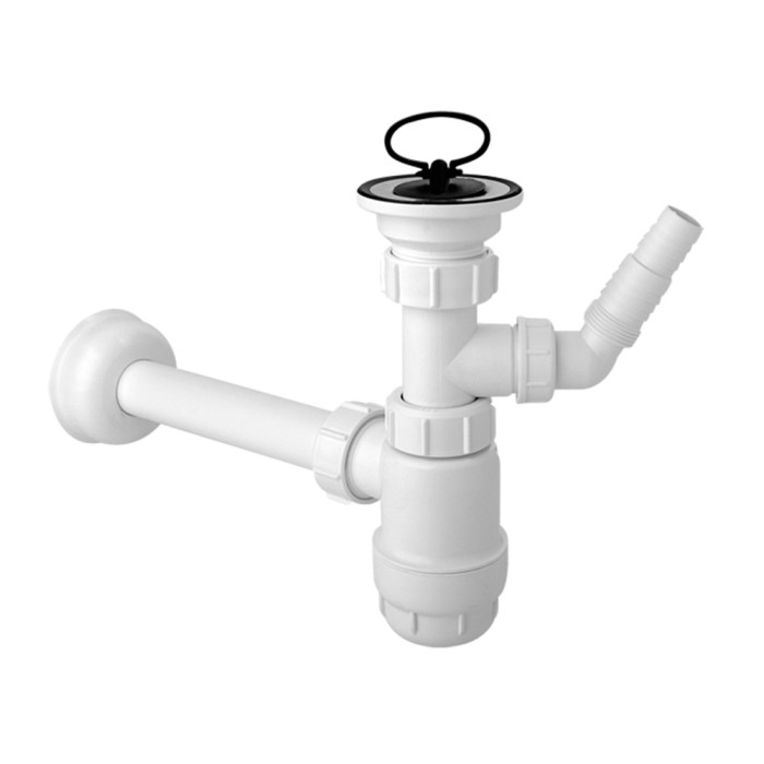 1 1/4" x 32 mm, su nerūdijančio plieno filtru, guminiu kamščiu ir jungtimi prie skalbimo mašinos arba indaplovės.