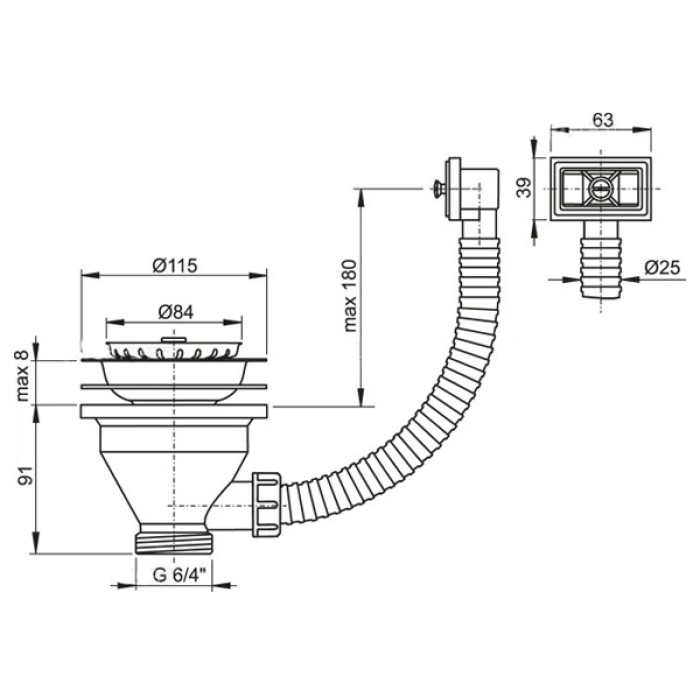Sifonas AP kriauklei su persipylimu 115mm 6/4