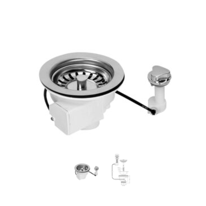 Automatinis kamštis: leidžia patogiai uždaryti ir atidaryti kanalizaciją nenaudojant tradicinio kamščio.