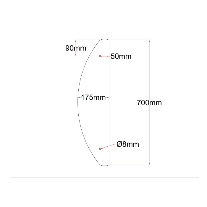 Matmenys: ilgis 700 mmPlotis (plačiausioje vietoje) 175 mmAtstumas tarp skylių centrų - 515 mm