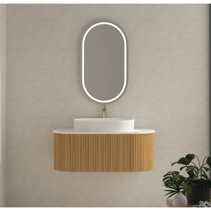 Pakabinama spintelė su keramikiniu praustuvu (LED veidrodžio komplekte nėra, įsigyjama atskirai).