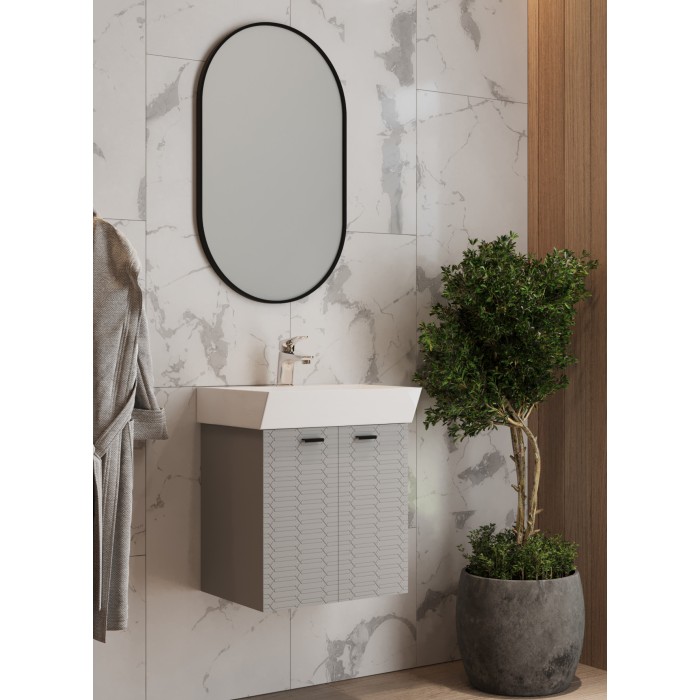 Vonios kambario spintelė su praustuvu Piccolo PC-60 pilka pakabinama